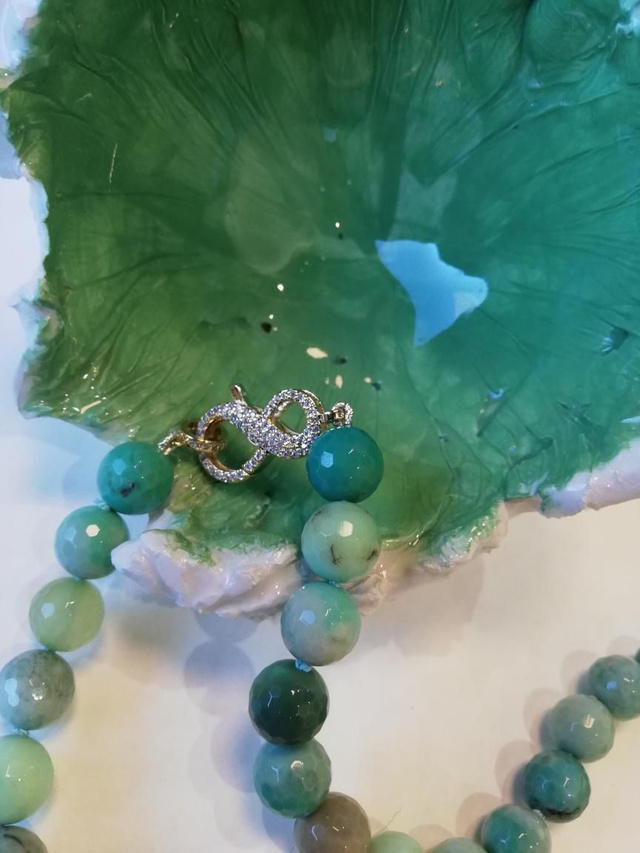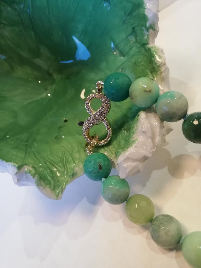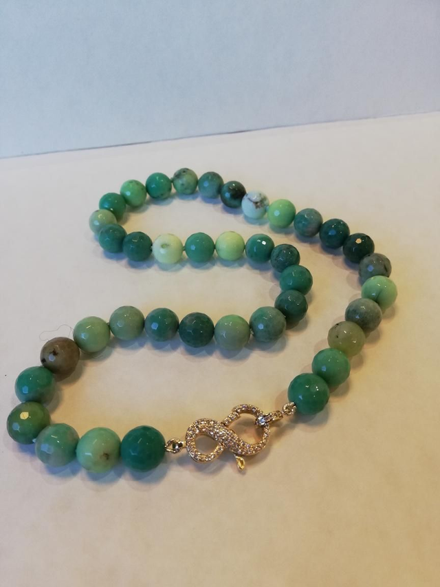 Collana in crisoprasio con, chiusura in ottone e zirconi