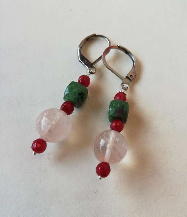 Argento rodiato, radice di rubino, quarzo rosa e rubizoisite